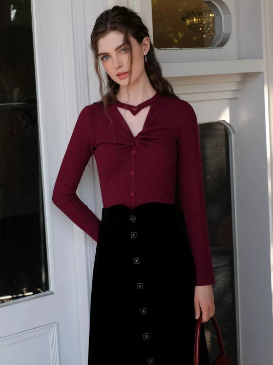 Velvet Black Twist Knit Love French Skirt