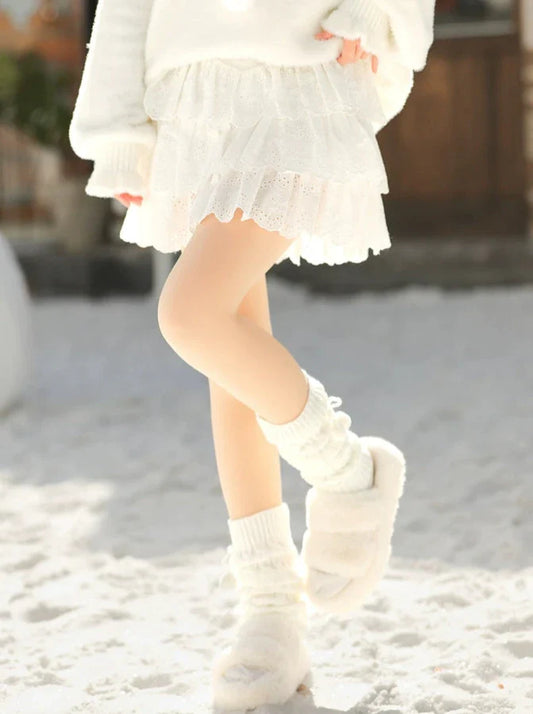 Pearl Ribbon Skirt White French Pants Lace Flared White Eye
