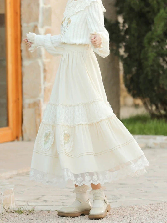 Flower Corduroy Lace Long Forest Embroidery Skirt