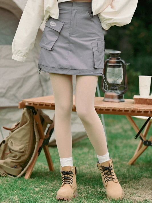 Star American Print Loose Zip Hoodie + Irregular Skirt + Leg Warmers