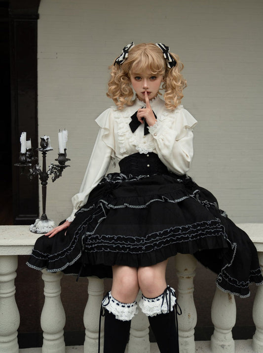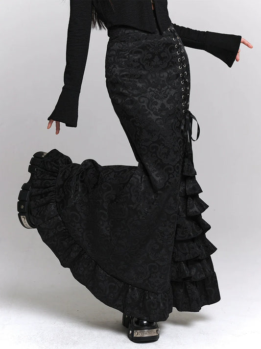 Side Flared Lace-Up Dark Skirt Waist Frilled