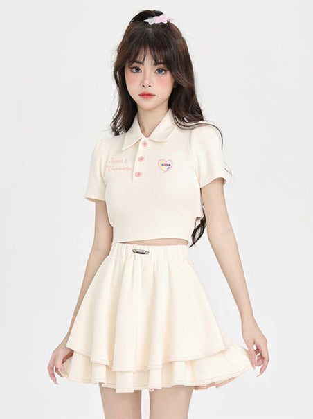 Back Style Collar Polo Ribbon Skirt Shirt Ballet Short