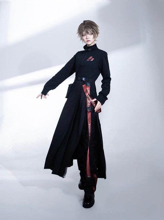 Scarf + Lapel Long Shirt Skirt Pleated