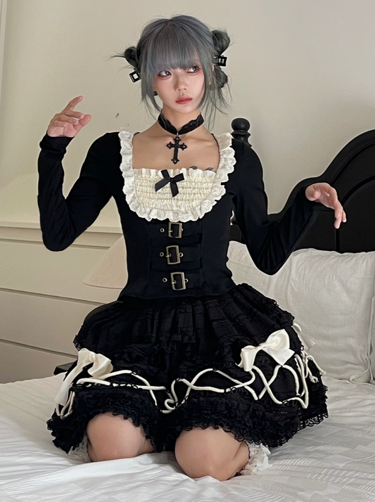 Strap Lace Retro Skirt Ribbon Cross