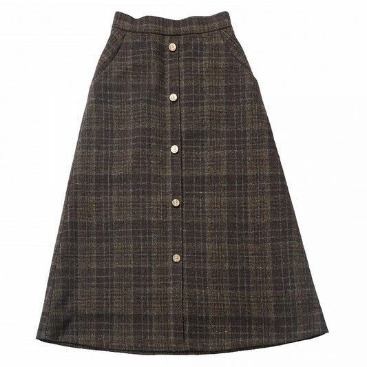 Brown Plaid Rabbit Button Midi Length Skirt
