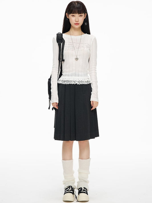 Black Gray Lace-up Knee Length Skirt