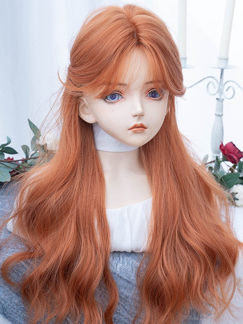 Orange Long Wavy Synthetic Wig With Curtain Bangs