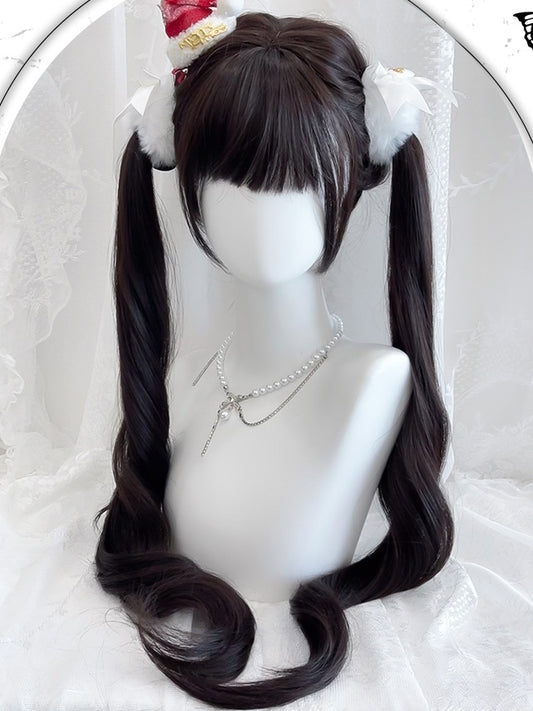 Black Tea Short Bob Cut Synthetic Wig With Double Ponytail Claw Clips