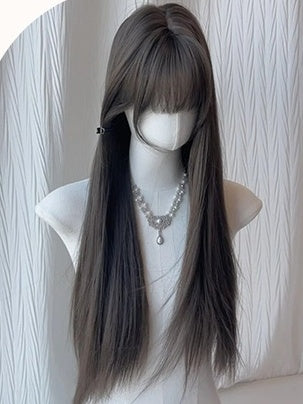 Milk Tea Long Straight Synthetic Wig With Bangs