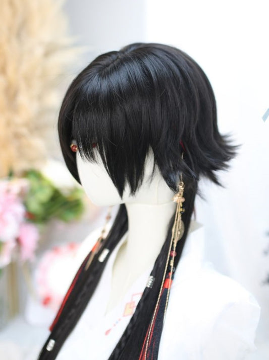 Champagne/Brown/Black Tea Short Wavy Wig with Full Bangs