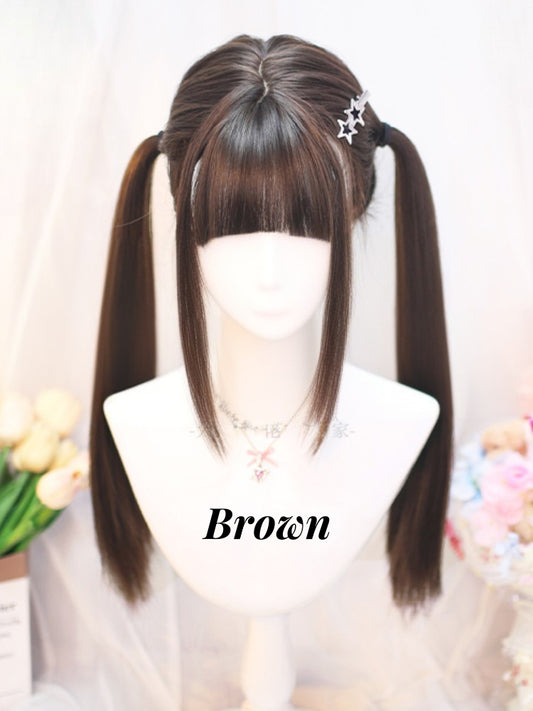 Brown/Black Tea Under Bust Length Straight Wig with Full Bangs
