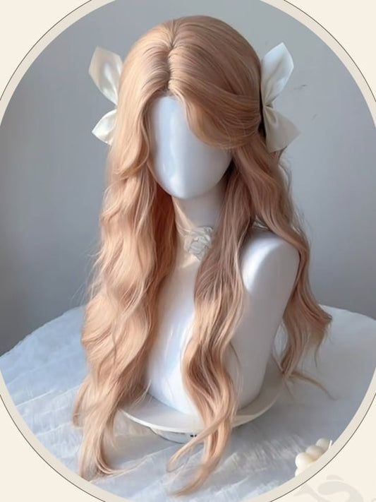 Pink-blonde Waist Length Wavy Synthetic Wig