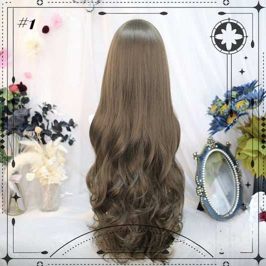 Brown Under Bust Length Wavy Wig with Curtain Bangs