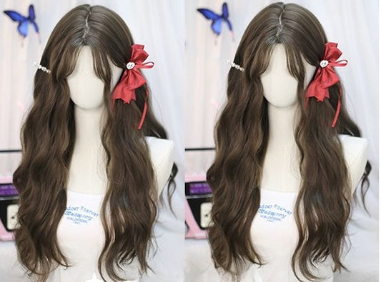 Brown Under Bust Length Wavy Wig with Air Bangs
