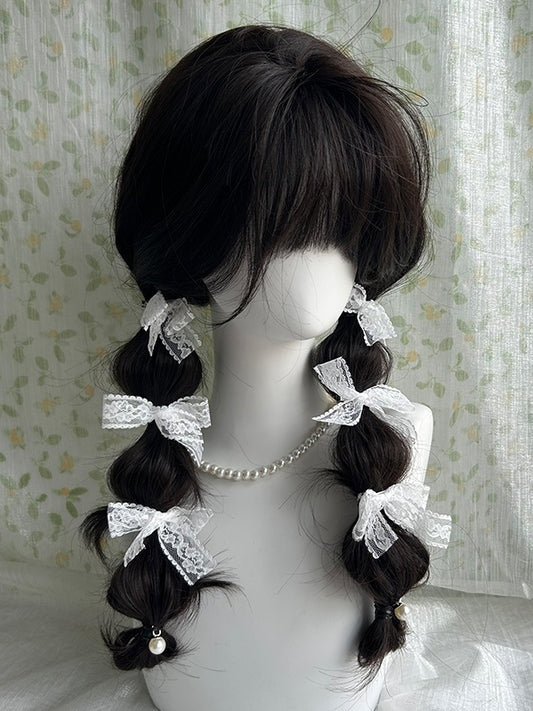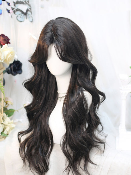 Black Tea Under Bust Length Wavy Wig with Curtain Bangs