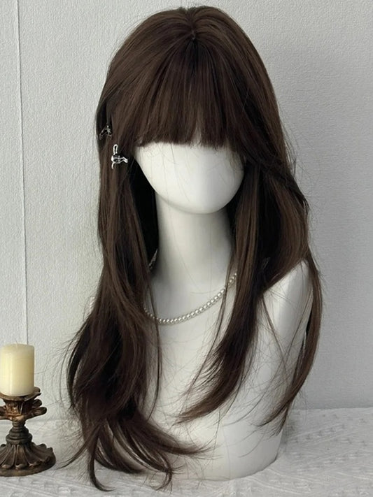 Brown Under Bust Length Straight Synthetic Wig With Bangs