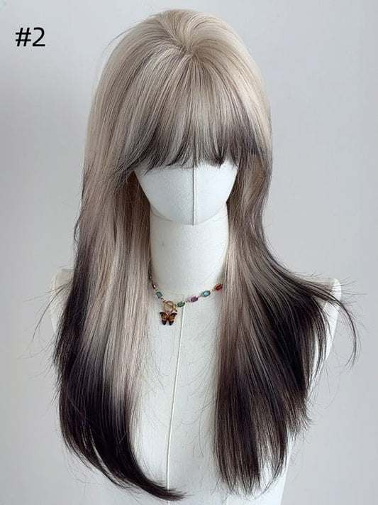 Black and White Ombre Under Bust Length Wig with Full Bangs