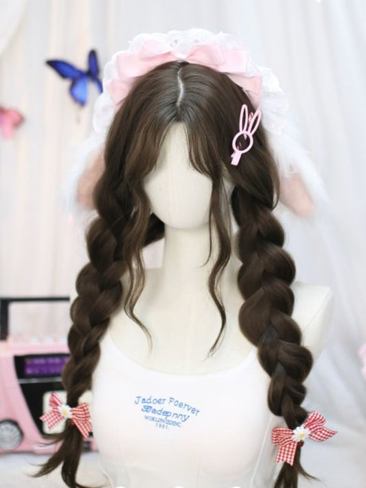 Gray Brown Under Bust Length Braids Wig with Wavy Curtain Bangs