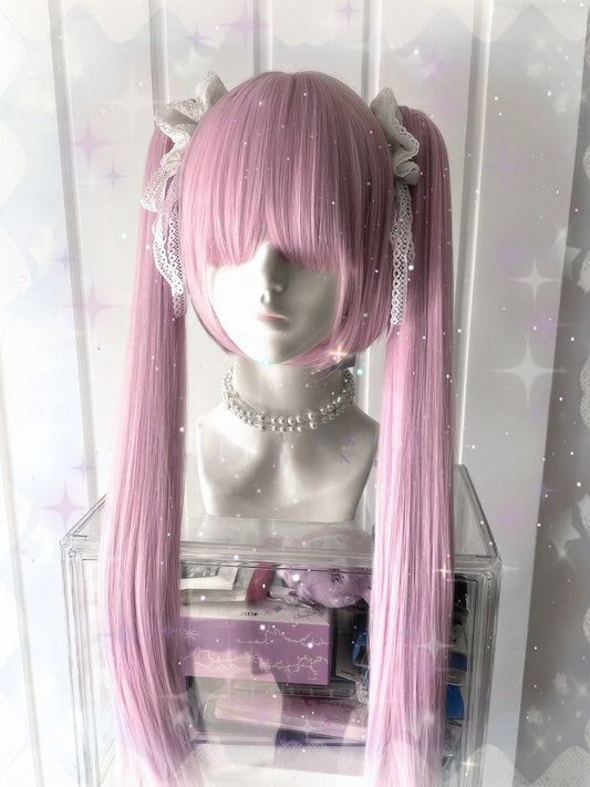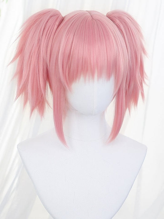 Clip Wig Pink Double Bangs Hair Short Ponytails Full with Claw