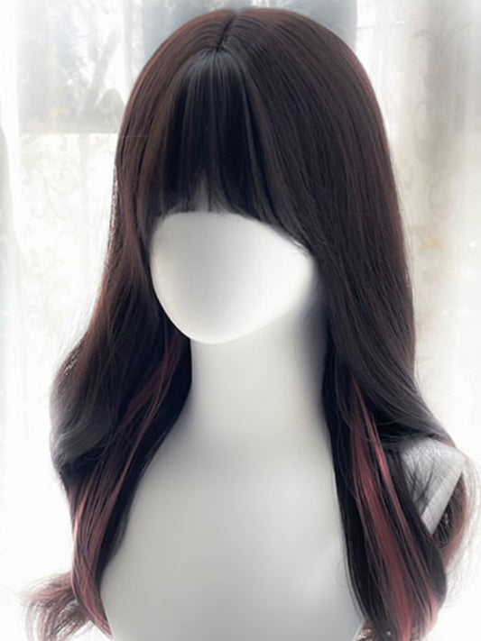 Air Wig Black Highlight And With 65CM Pink Wavy Bangs