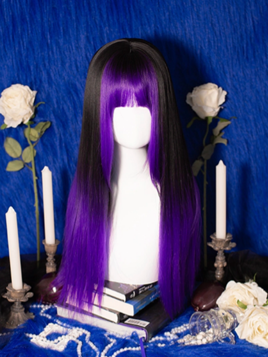 Black Bangs Purple Wig with Straight 68CM Ombre Long