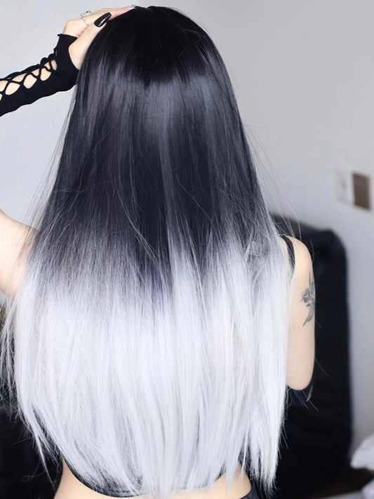 Ombre Bangs 68CM With Wig Air Silver And Black Straight