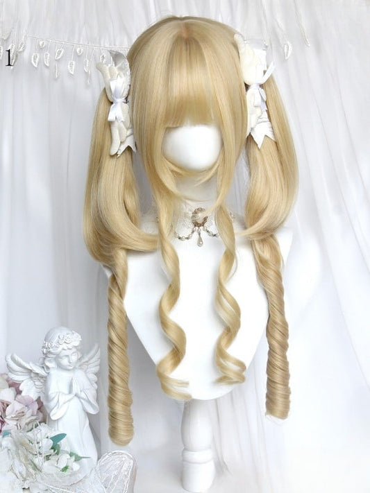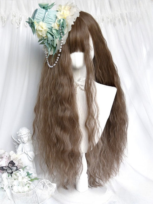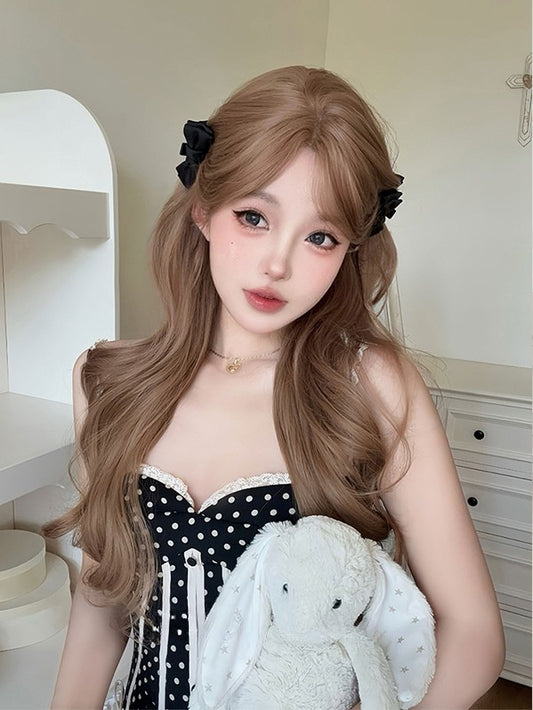 With Wig Bangs 72CM Length Wavy Champagne Curtain