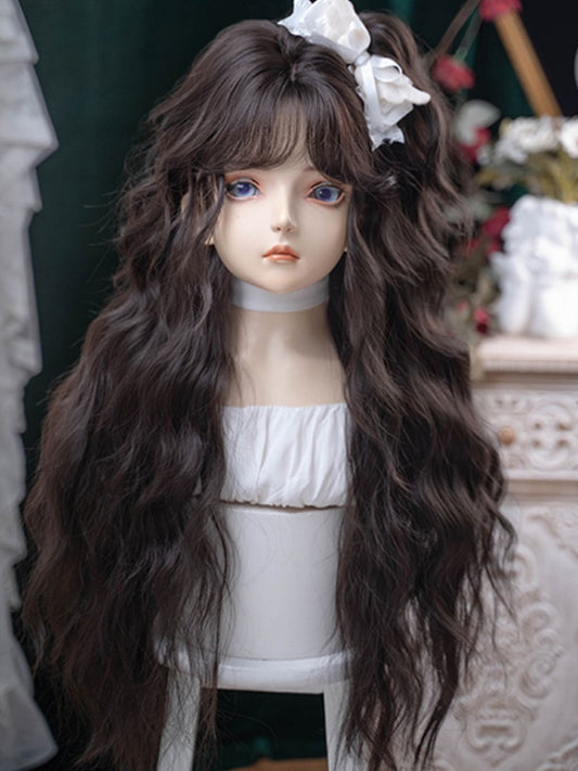Bangs Side-swept With Wig Brown 65-70CM Length Wavy