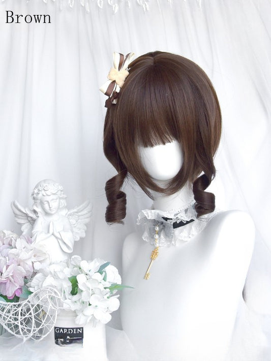 Wig Wavy 35CM With Brown Length Air Bangs