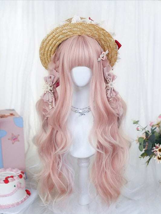 Length Pink Wavy Full With Bangs 75-80CM Wig