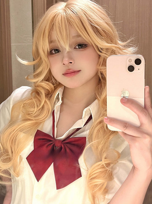 With Blonde Wavy 65CM Bangs Wig Length
