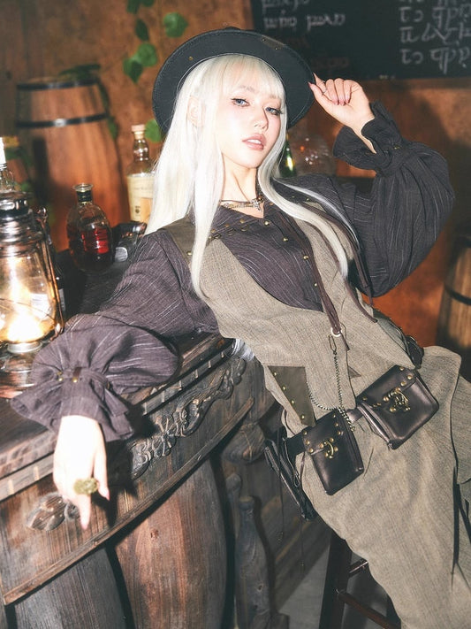 - Sleeves Short Steampunk Shirt Ouji + Lolita Set Three Pieces