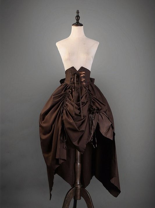 Brown Corset Belt High Waist Steampunk Lolita Drawstring Skirt