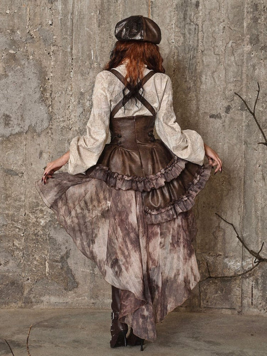 Bag Ruffle Trailing Skirt PU Waist Steampunk Antique Retro