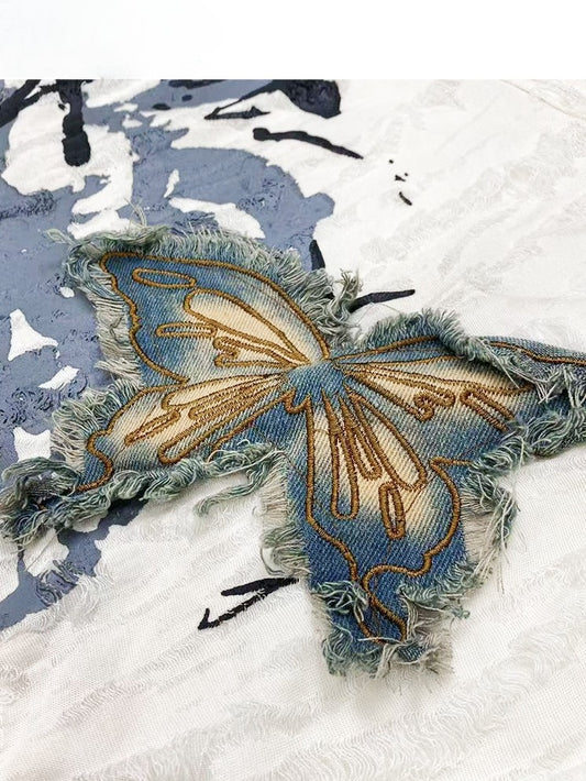 Butterfly White Kawaii Neckline Applique Bittersweet T-shirt Asymmetrical