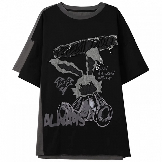 Bittersweet and T-Shirt Two-pieces Faux Black Applique Gray Bunny Pattern Letter