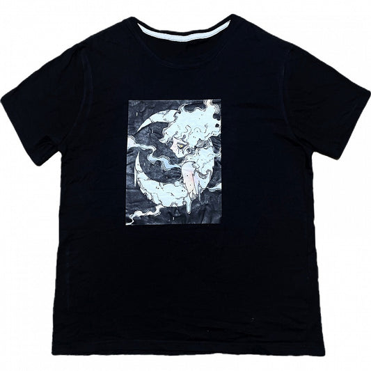 Print T-shirt Black Short Gyaru Cartoon Fashion Sleeves