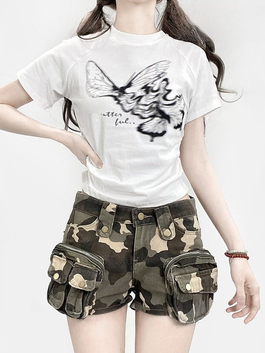 Butterfly And T-shirt Bittersweet Glamorous Letter Brown Print