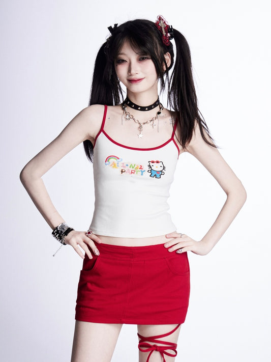 White Kitty Pattern Bittersweet T-shirt/Cami Top
