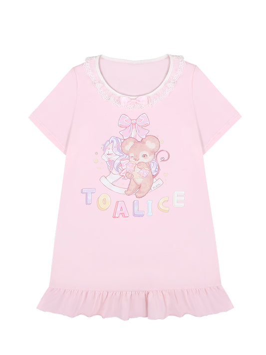 White/Pink Version Trim Adorable Lace Long Print T-Shirt Mouse