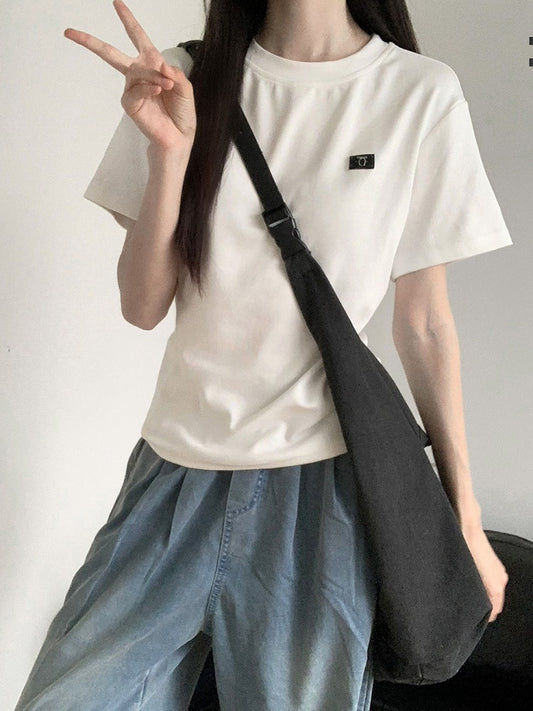 White/Black And Kawaii Daily Applique Bear Embroidery T-shirt Letter Firework