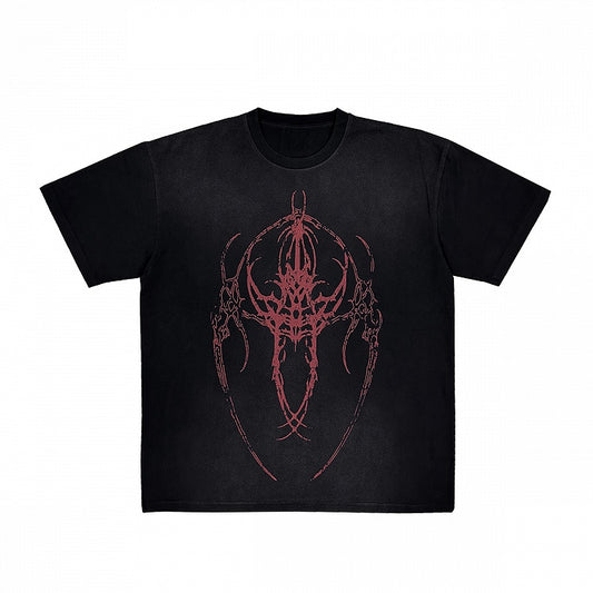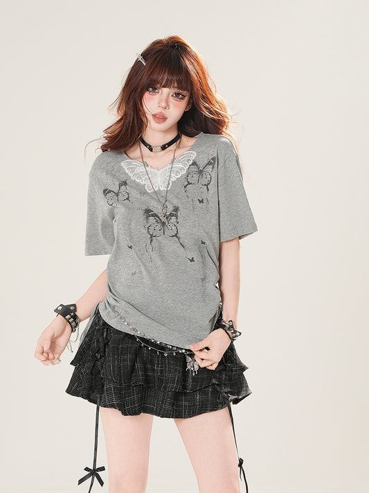 T-shirt Wasteland Butterfly Drawstrings Gray Punk Print with