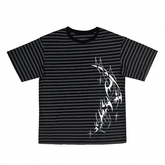 Print Decorative T-Shirt Chic Black with Gray Striped