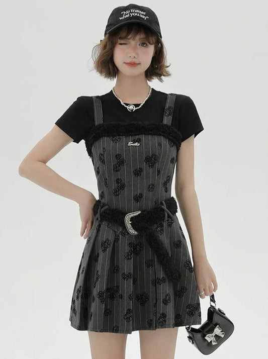 Dark Top Sleeve Chain Knit T-Shirt Strap Split