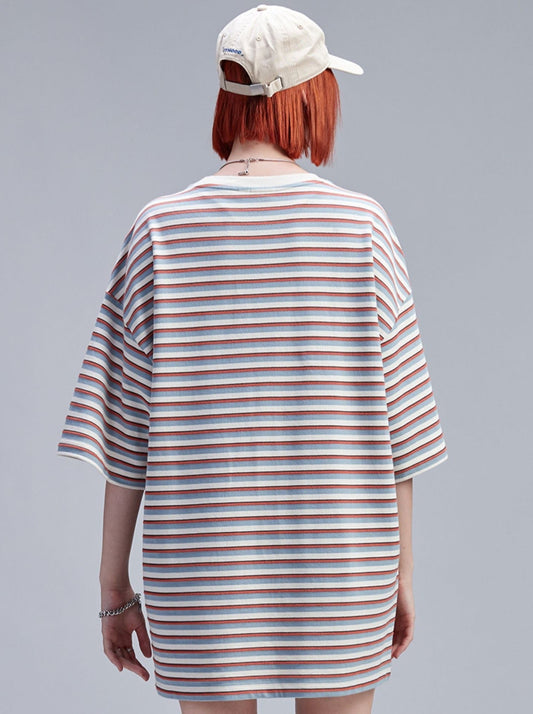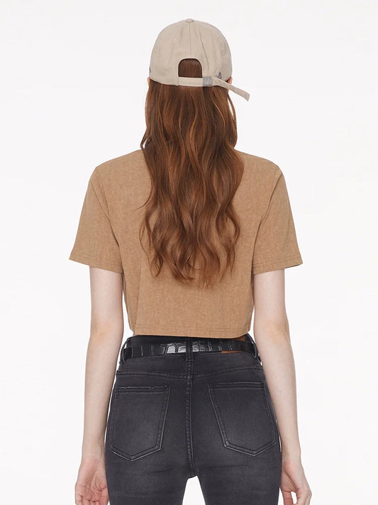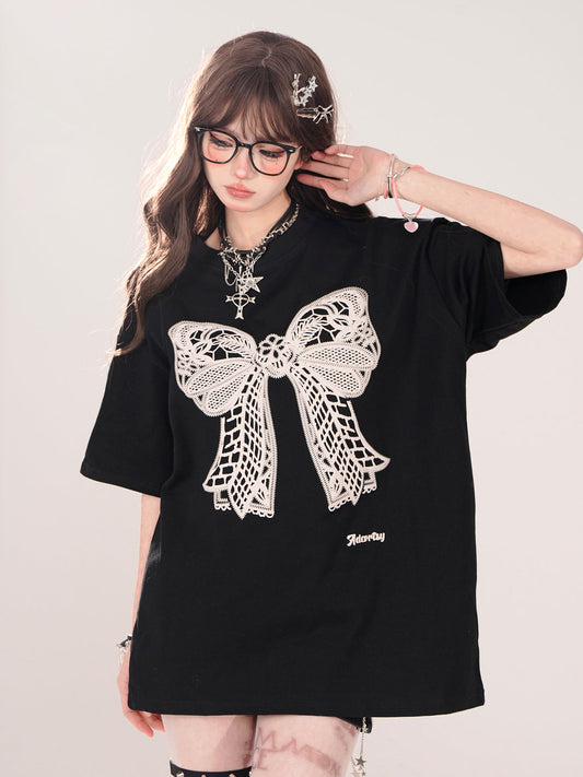 T-Shirt Street Round Print Ribbon American Deco Neck Loose