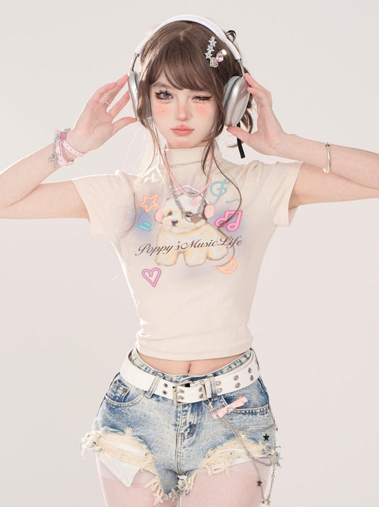 American Short T-Shirt Print Neck High Dog Little Cutie