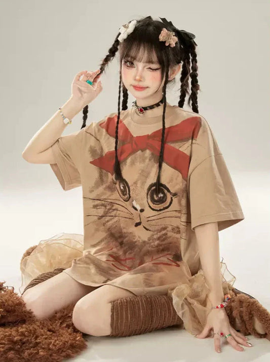 Design Illustration T-Shirt Cute Artistic Loose Rabbit