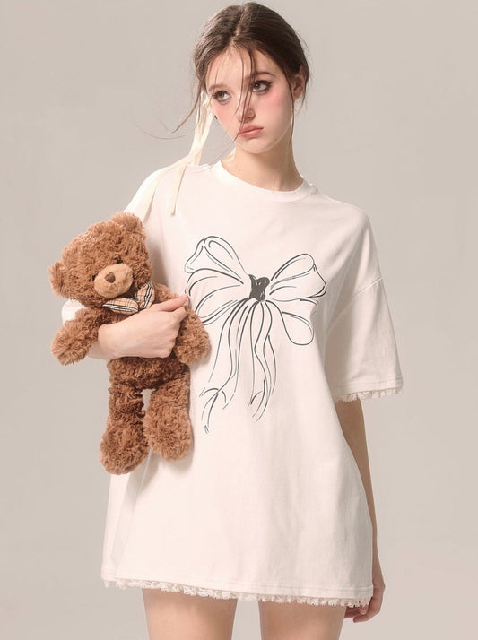 Big Loose Illustration T-Shirt Art Ribbon