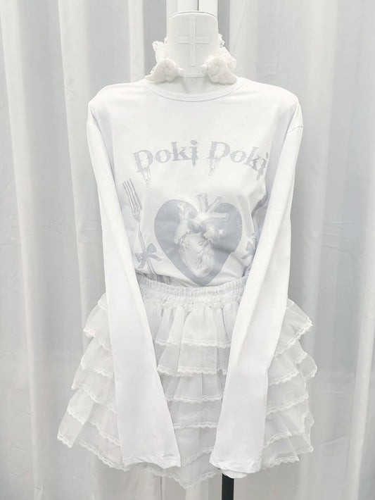 Yami Kawaii White Heart Print Graphic T-shirt