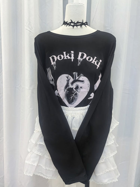 Yami Kawaii Black Heart Print Graphic T-shirt